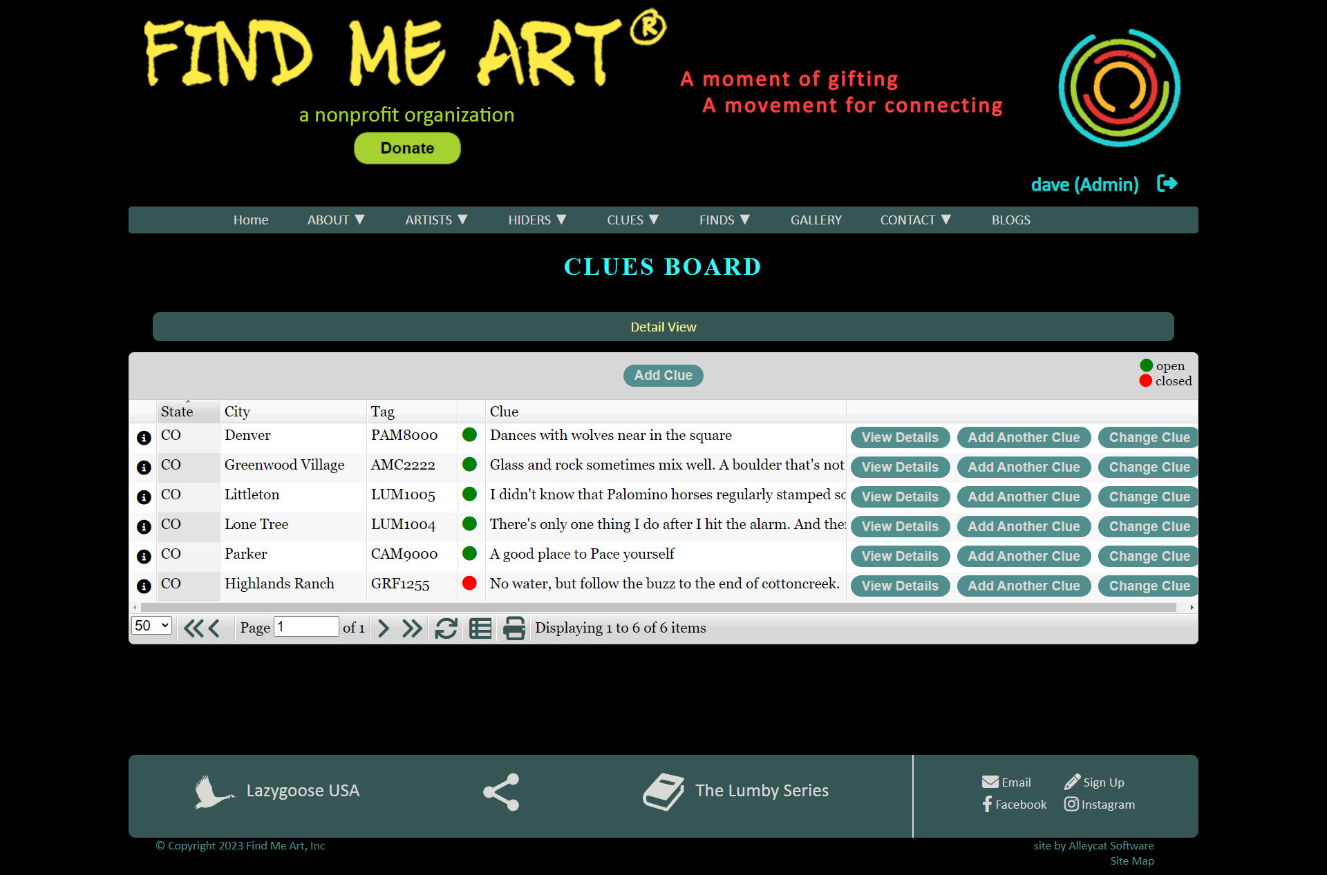 • Multiple views of clue/find posts, optimized for user or administrator.